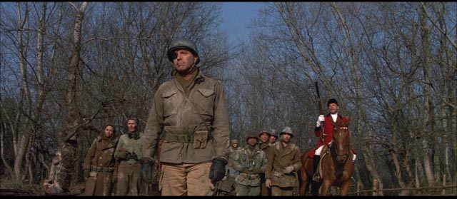 Pollack insère régulièrement dans la narration des images du château et de la forêt environnante, sous la forme d’inserts rapides, flashs quasi-subliminaux, qui sont comme l’irruption ou le surgissement d’une autre réalité, d’un autre temps, dans la réalité de la seconde guerre mondiale. Cette autre réalité exerce notamment sur le Capitaine Beckman (Patrick O’Neal), un spécialiste de l’histoire de l’art, un puissant attrait, puisqu’il se range au début du film à l’avis de Texier, essayant de convaincre Falconer qu’il est plus important de sauver le château et les vestiges de la culture humaine qu’il recèle que d’arrêter la marche de l’armée allemande. Cette opposition apparente entre l’art (le château et ses tableaux) et la civilisation (au sens de la civilisation européenne menacée de destructions par le nazisme, à moins qu’elle ne soit déjà détruite comme l’affirme Falconer), entre le temps passé capturé dans le château et le temps présent de la guerre, nourrit toute la première partie du film. La musique élégiaque de Michel Legrand participe de l’atmosphère particulière du lieu qui menace d’engloutir le régiment de Falconer, tout comme l’insondable profondeur de la forêt engloutissait l’aspirant Grange dans Un Balcon en forêt de Gracq. Les deux récits font voir ce que la guerre elle-même peut avoir de partie liée avec l’irréel, avec l’incroyable. La guerre renverse la réalité, lui substitue une perception instable des lieux, crée une faille dans la matière du réel, où l’on peut tomber. Même le village belge d’à côté s’en trouve contaminé si l’on en juge par cette maison close au décor rougeoyant et aux prostituées extravagantes, maison close qui paraît elle aussi appartenir à un autre temps, voire à un autre lieu. Improbable aussi ce soldat américain fatigué des combats (Peter Falk) qui s’établit chez la femme du boulanger.