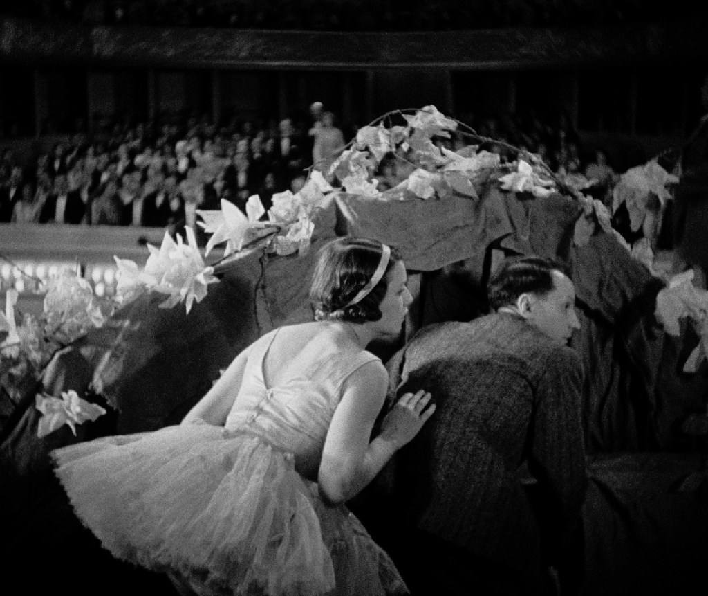 Dans les intéressants bonus figurant sur le DVD/bluray du film, qui vient d’être réédité chez Tamasa, René Clair affirme qu’il se défiait des dialogues du parlant (qui lui paraissaient appartenir au théâtre, alors même que Lubitsch prouva rapidement le contraire) et avait souhaité les remplacer par des chansons dans la mesure du possible, la musique servant de contrepoint aux images. Mais ce recours aux chansons, en particulier dans la première partie du film, a pour effet de le rapprocher de l’opérette, qui n’est elle-même pas sans rapport avec le théâtre. Ce n’est pas un hasard sans doute si la meilleure partie du film est celle se passant à l’Opéra comique. Auparavant, les décors peints en blanc et couverts de tulle lui conféraient un air d’étrangeté peu en rapport avec l’histoire racontée (et ce d’autant plus que la lumière au début aplanit l’action sans les contrastes de l’expressionnisme). A contrario, dans les séquences se déroulant sur la scène ou dans les coulisses de l’Opéra comique, un lien naturel s’établit entre les décors factices et les évènements fantaisistes se déroulant au premier plan. A cet égard, la plus belle scène du film est celle où Michel et Béatrice se dissimulent derrière un décor de la scène de l’Opéra comique et où leurs gestes d’amoureux (le charme gracile d’Annabella opérant face au boudeur René Lefèvre) répondent aux paroles de la chanson entonnée, un mouvement de grue les révélant au milieu des ornements du décor qui paraissent s’élargir pour servir d’écrin à leur bonheur : les amoureux sont seuls au monde.